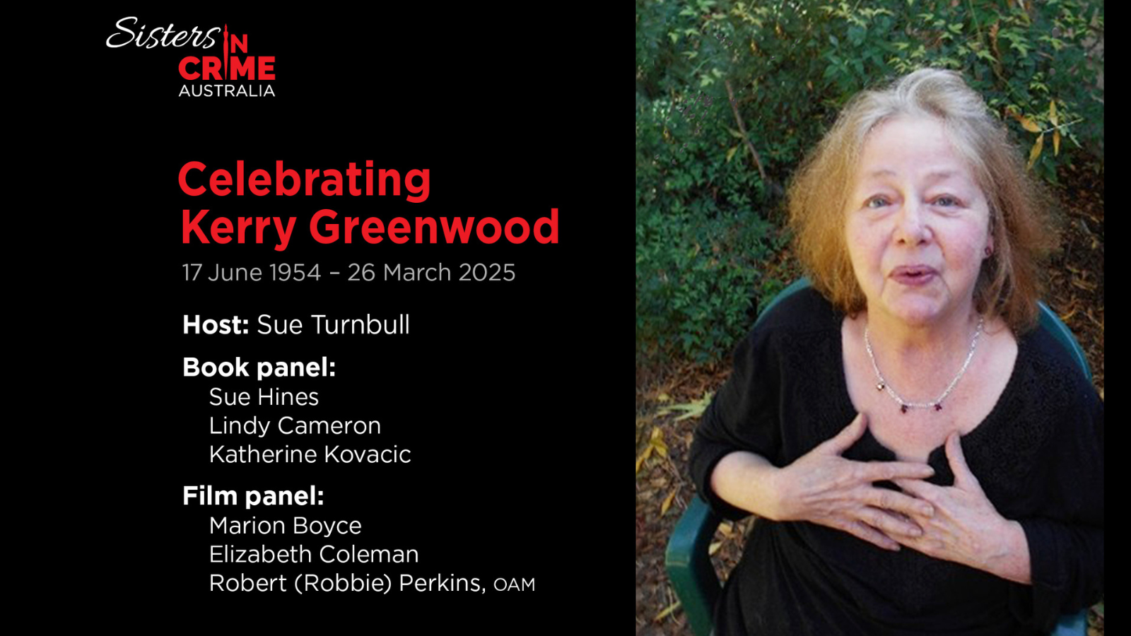 Over 140 Sisters in Crime and Brothers-in-Law gathered at the Hotel Windsor’s Grand Ballroom on Sunday (28/9) for Fabulous, feisty, fun & Phryne to pay tribute to the life and legacy of Kerry Greenwood. It was a grand location and a grand occasion. Almost everyone was ‘frocked up for Phryne’ – or ‘suited up’, as the case may be. As the host of the event, Sisters in Crime’s Ambassador Sue Turnbull remarked, Kerry would have been proud, and jealous she could not be there.