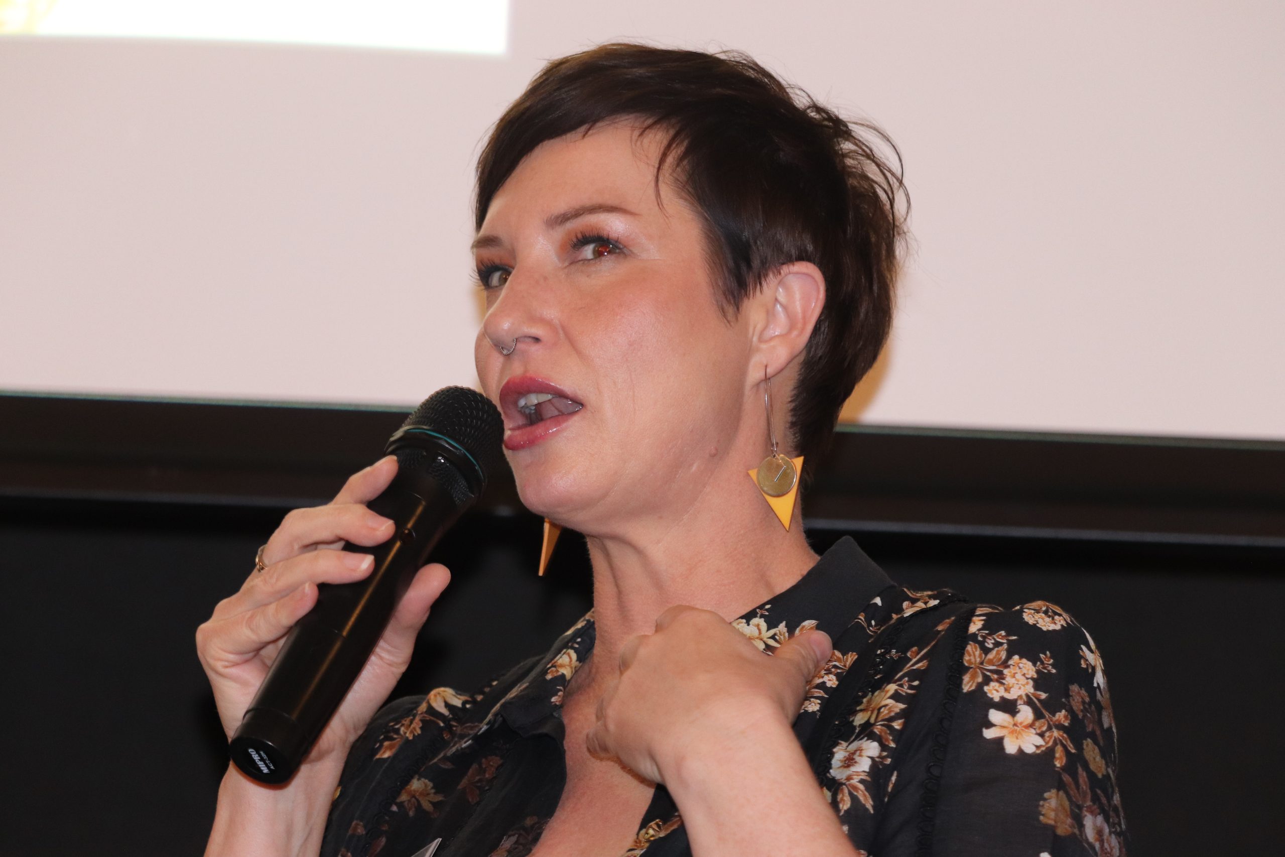 Multi-award-winning author Ellie Marney presented the Davitt Awards after discussing her life in crime with another multi-award-winning author, Cate Kennedy. Guests were invited to wear a splash of silver to mark the 25th anniversary, and Marney and Kennedy went overboard, with some help from the Salvos Op Shop in Castlemaine.