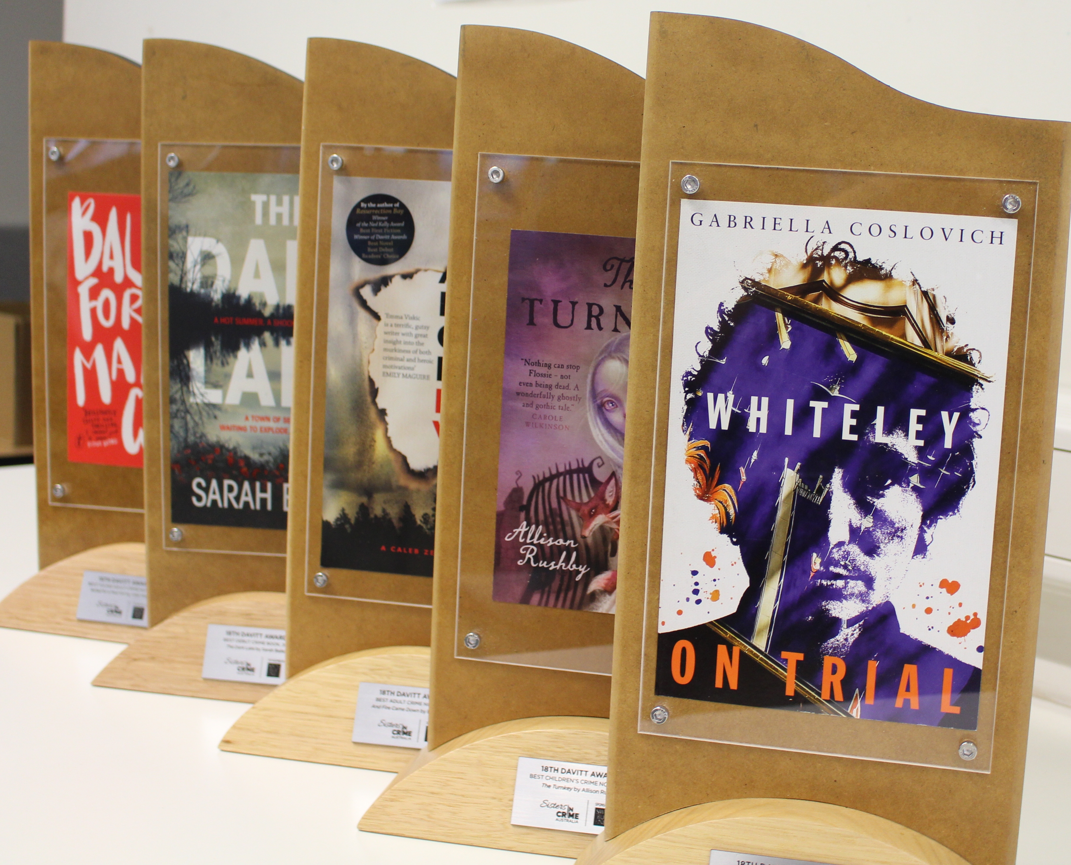 The awards are handsome carved polished wooded trophies featuring the front cover of the winning novel under perspex. No prize money is attached.