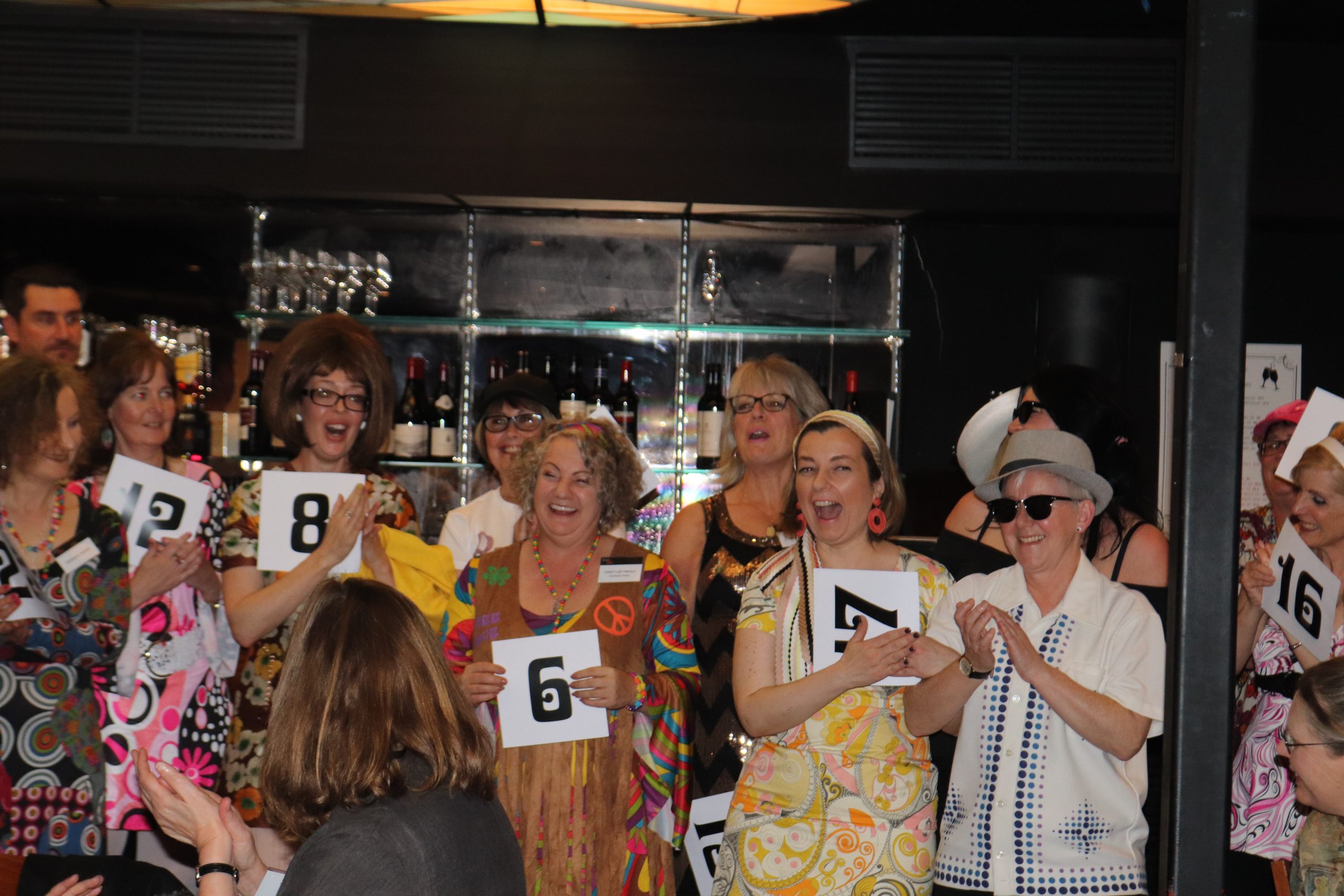 Crime fans attending Sisters in Crime’s 26th Scarlet Stiletto Awards were invited to come in sixties’ outfits as the awards’ presenter, Geraldine Hakewill, stars as Peregrine Fisher, Phryne Fisher’s niece, in Ms Fisher’s MODern Murder Mysteries set in 1964.